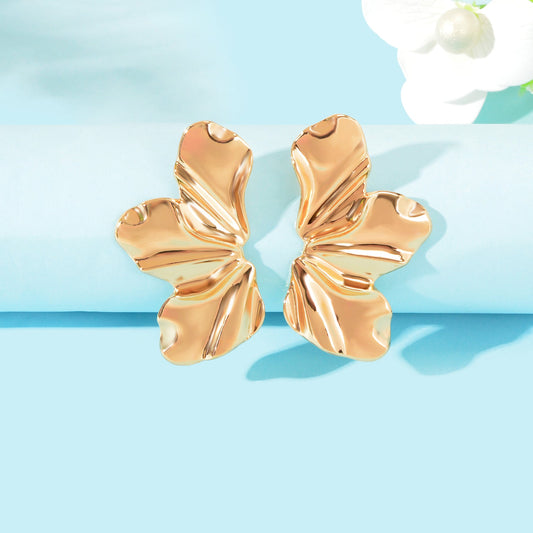 Stylish Golden Metal Geometric Irregular Leaf Stud Party Earrings for